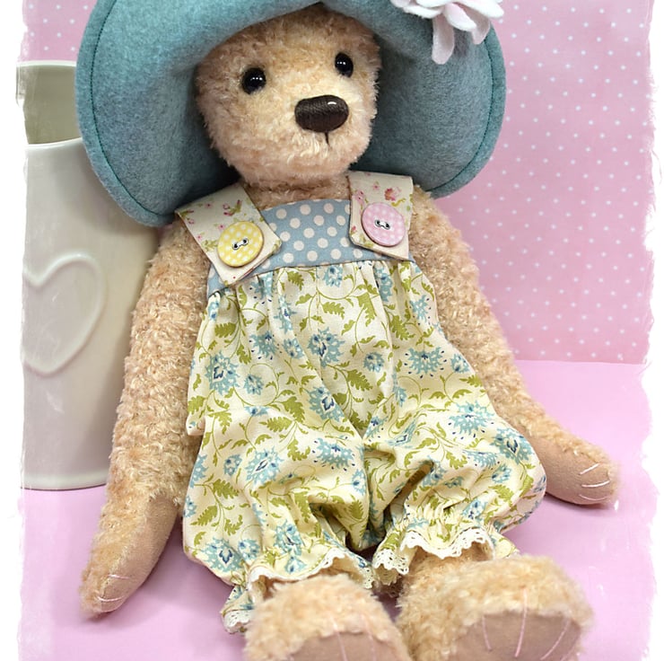 This pattern contains comprehensive step by step instructions with diagrams suitable for a beginner as well as a more accomplished sewer. The pattern shows you how to make a bear, her drawers and hat. Full sized pattern sheets printed on A3 paper, so no enlarging necessary. Pattern sheets for the drawers and hat included and all the clothes are designed to be removable.