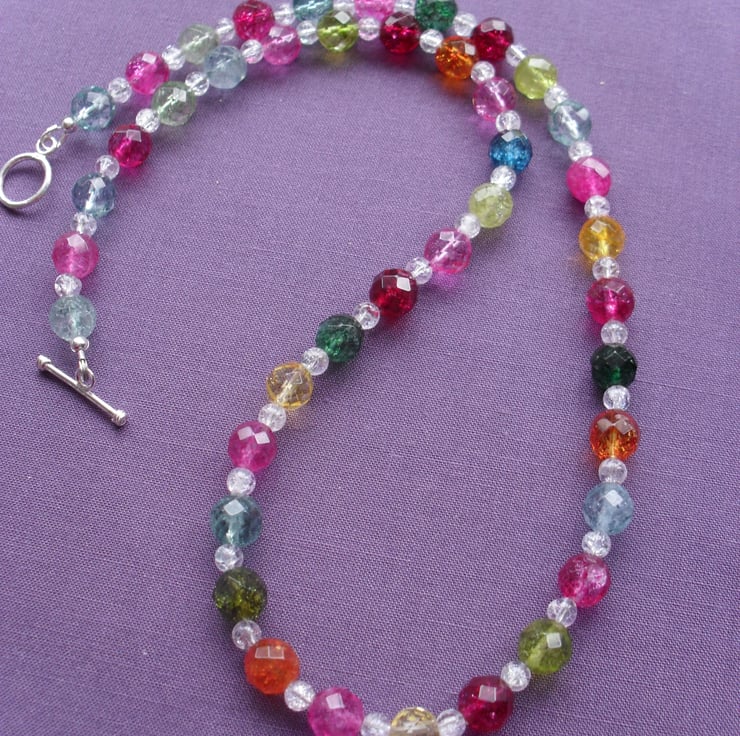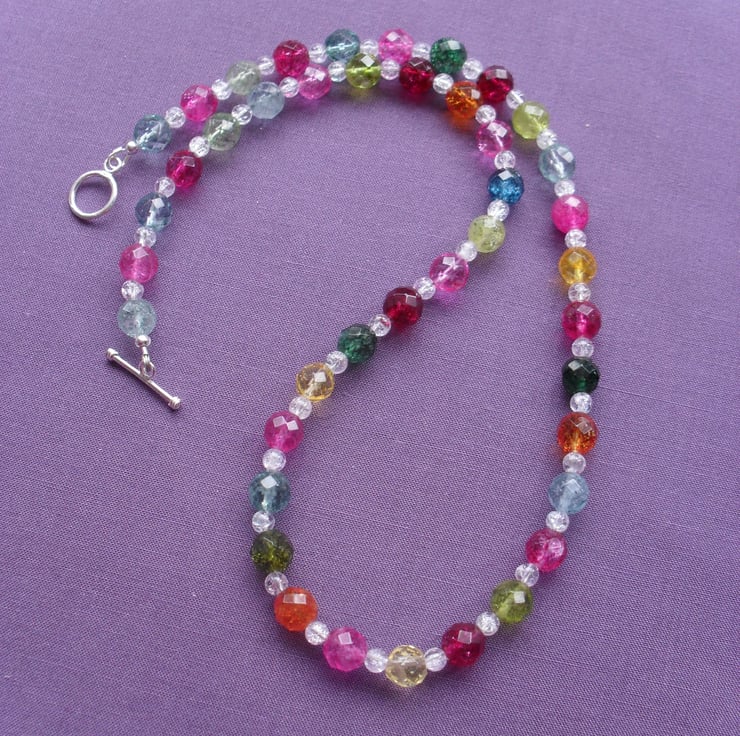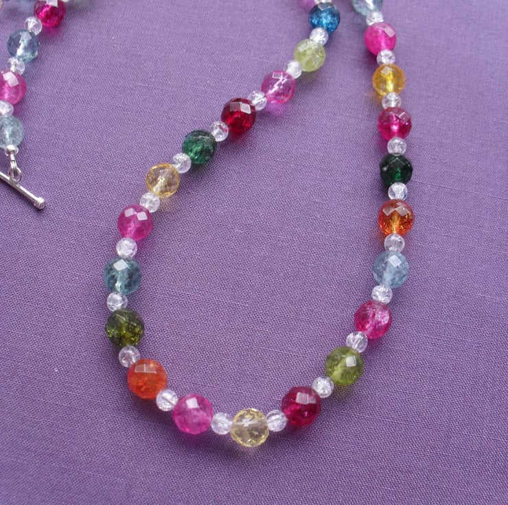 Multi coloured crackled quartz which has been faceted to give a lovely sparkle
