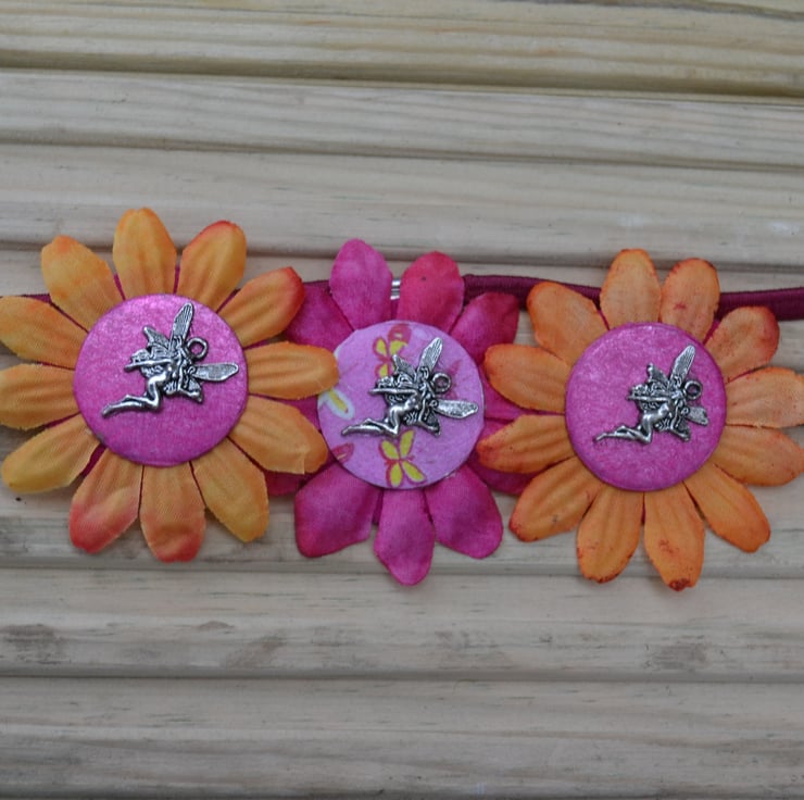 Flowers and Fairies Girl Headband (Orange & Pink)