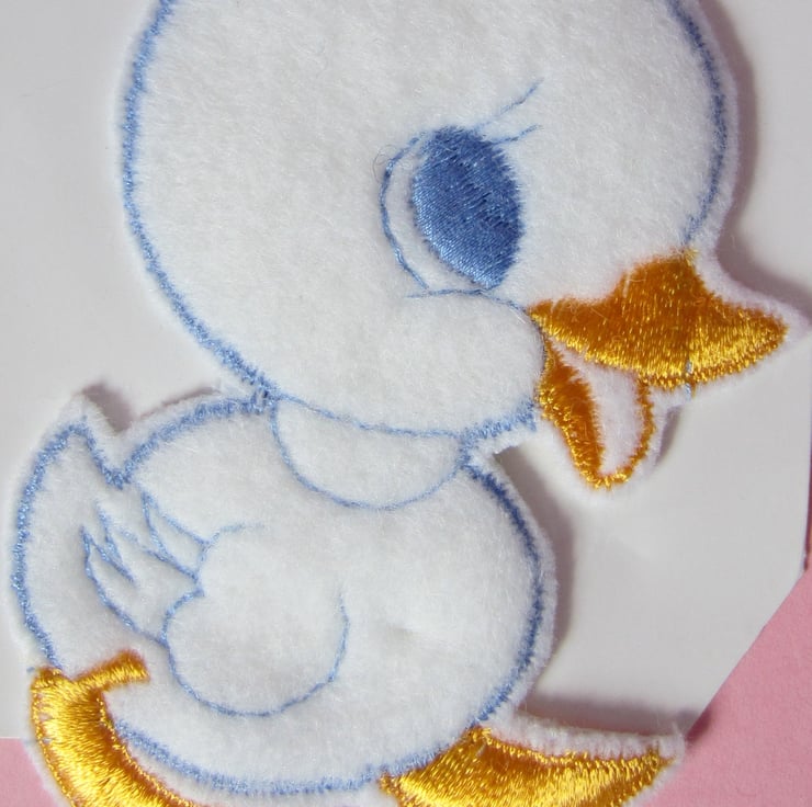 Cute blue and white fleece embroidered sew on duck motif. It measures 9.5 x 8 cm and probably dates to the 1960/70's. Would be lovely for decorating baby items.