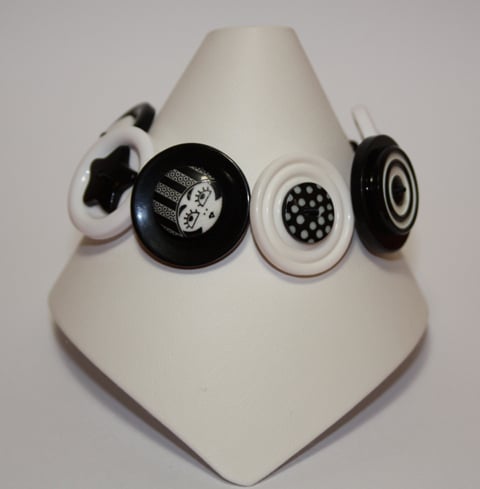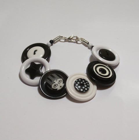 This distinctive button bracelet is rich with an assortment of black and white coloured buttons.