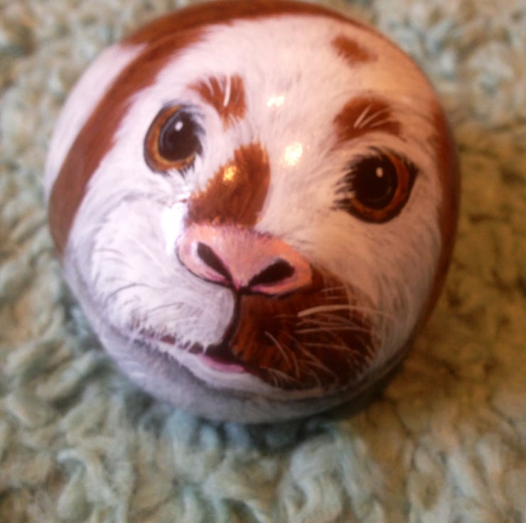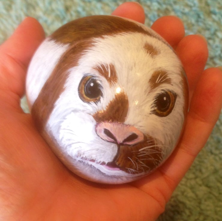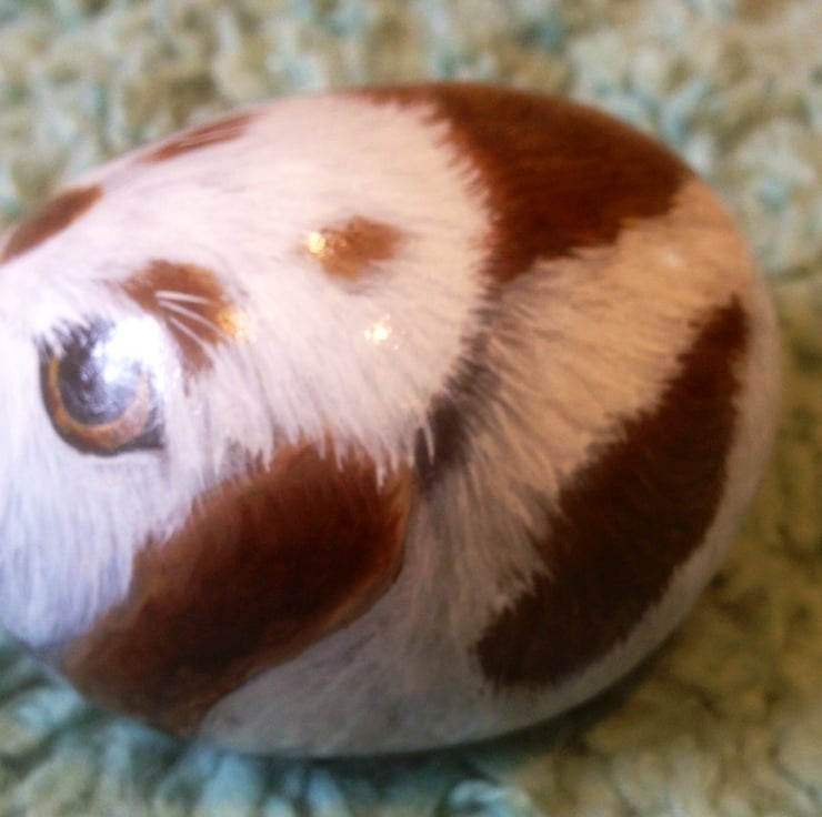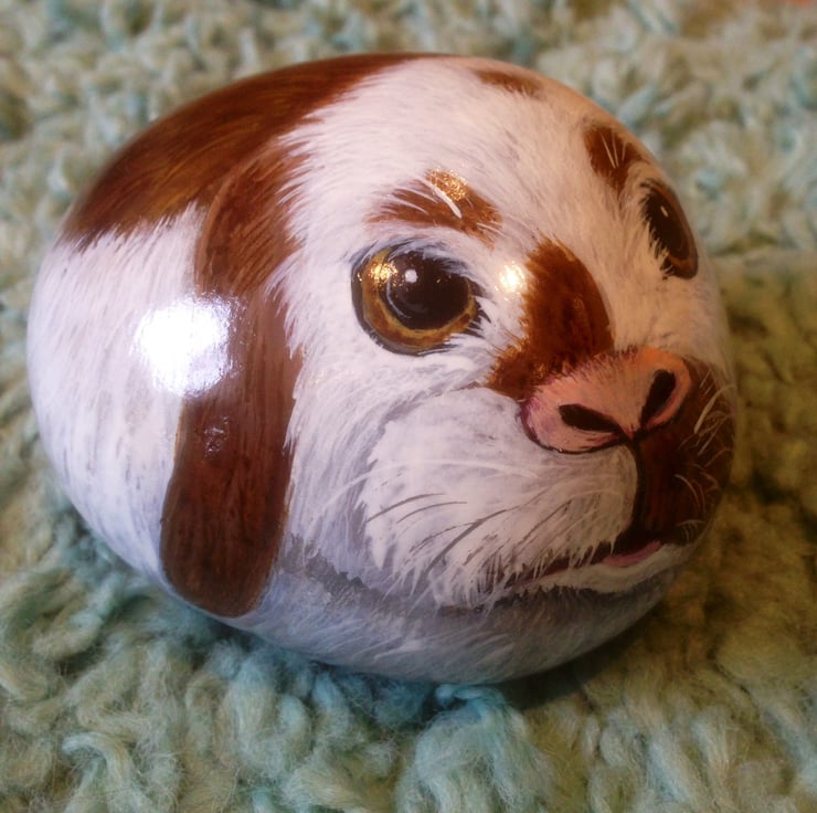 This rabbit has been painted on a smooth round stone and glazed for a glossy protective finish. This will be posted second class signed for.