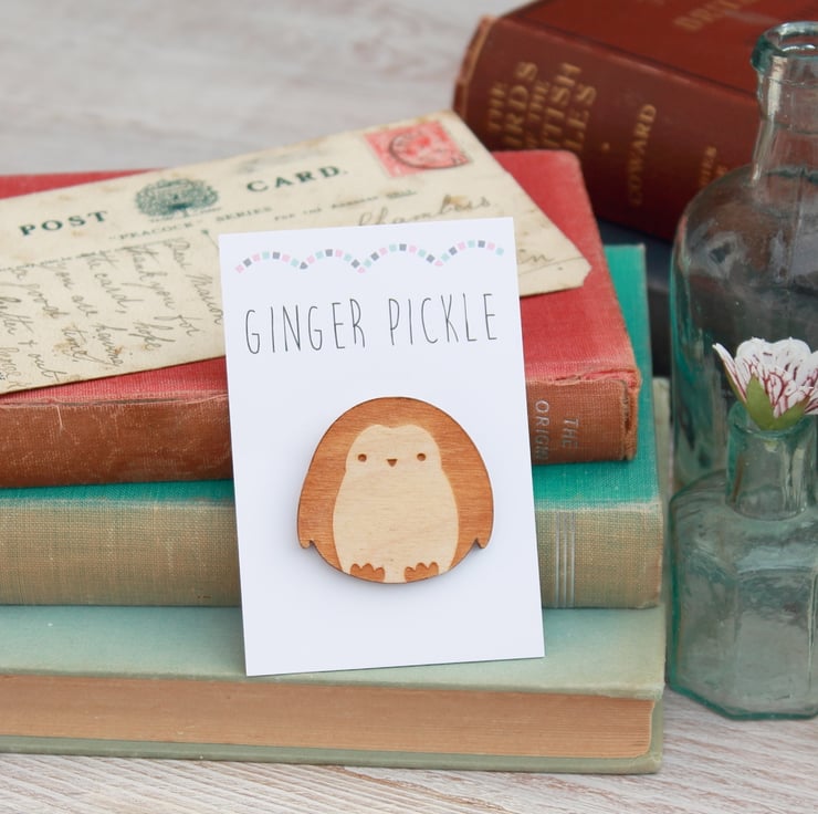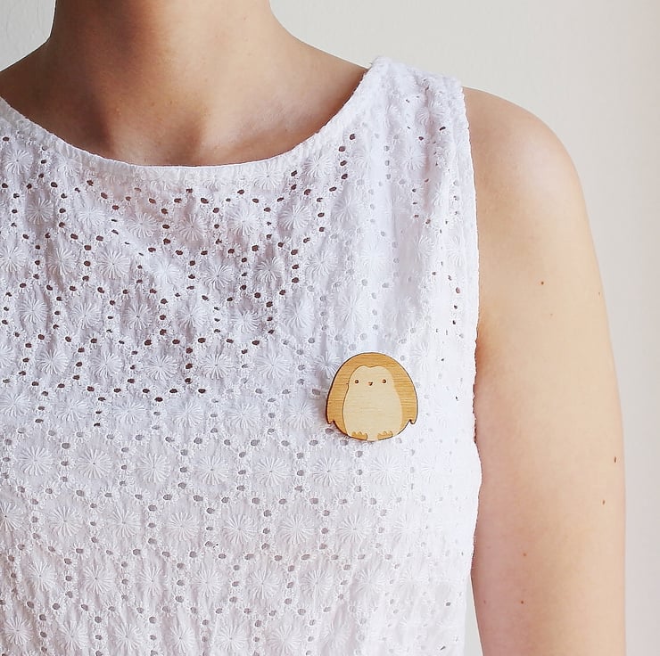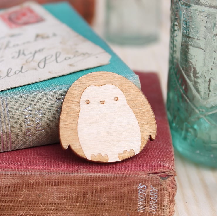 This cute wooden penguin brooch has been laser cut from 3mm birch plywood. It is glued securely to a silver plated brooch bar and has been coated in wood oil to protect the wood and give it a beautiful finish. The wood is FSC certified which means it's environmentally friendly!