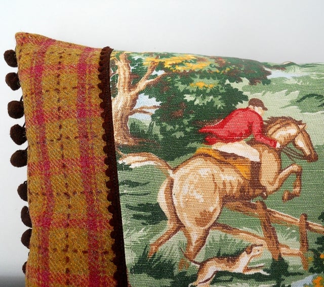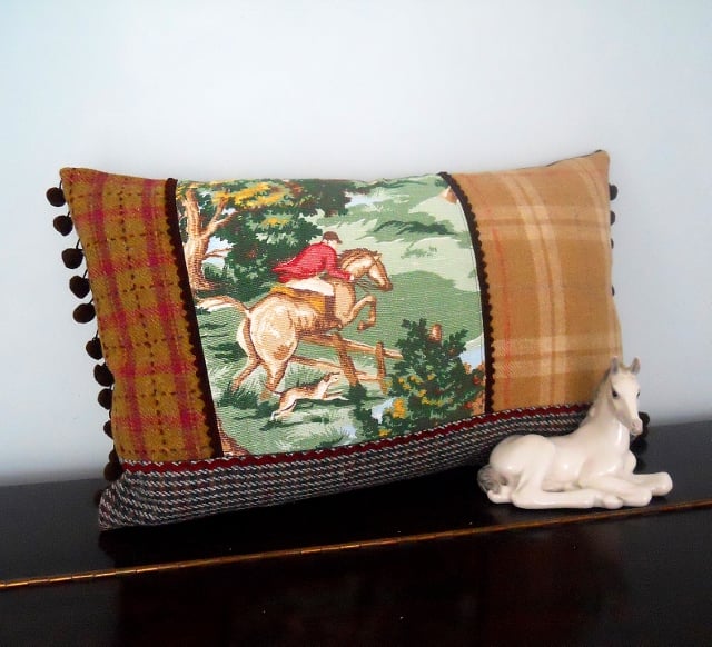 A fabulous 30cm by 50cm cushion featuring horse vintage fabric and other toning tweeds . This is a OAAK One Of A Kind cushion cover!