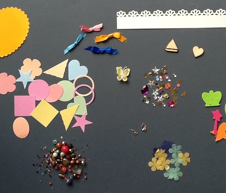 A lovely craft kit to keep the children happy over the holidays. All you need is some PVA glue and some imagination to make up a fabulous collage from these items. They could also be used to make cards. These kits are put together from a selection of destash items and each one will be slightly different and may not contain exactly the same items but will all have similar quantities.