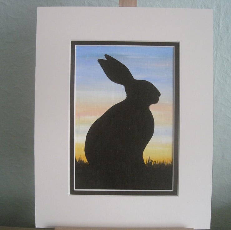 SALE Bunny Rabbit Silhouette Original Painting Art