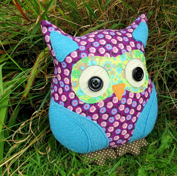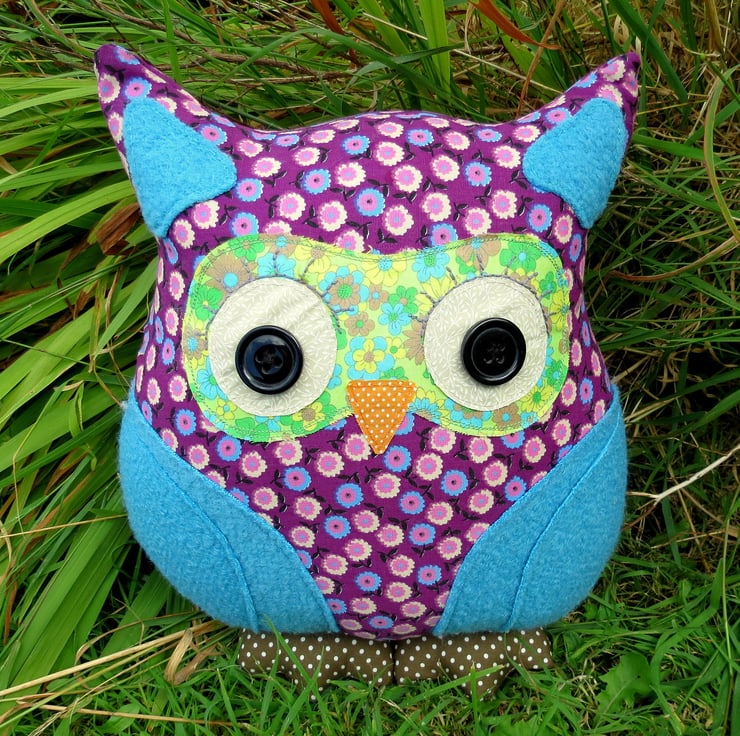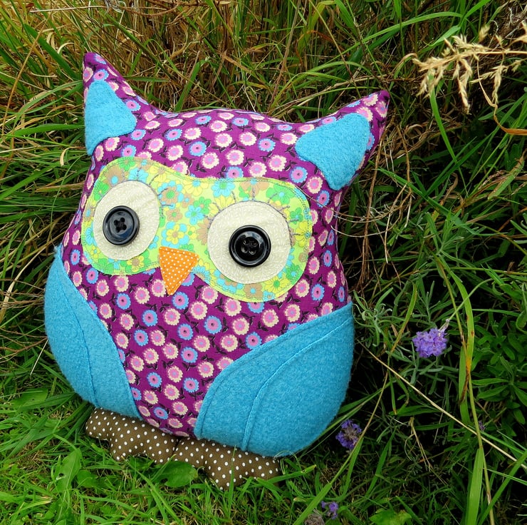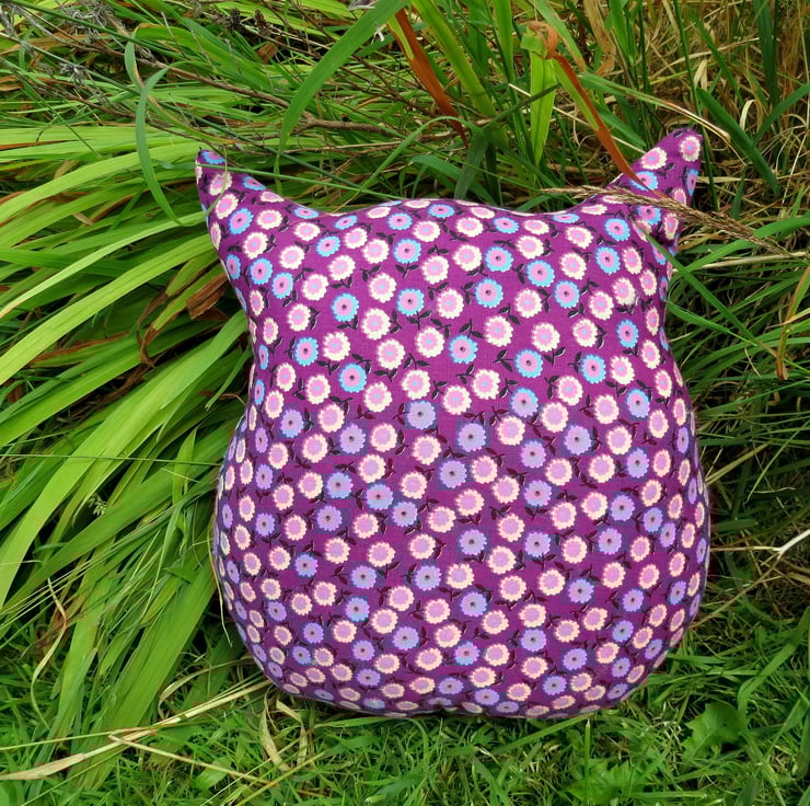 The background fabric is a vibrant flowerpower cotton from the 1970s.