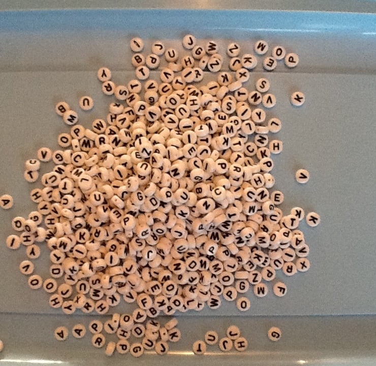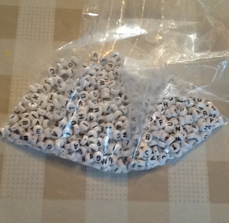 A pack of alphabet beads containing at least 677 beads (yes I counted them!). If I find more they will be added.
