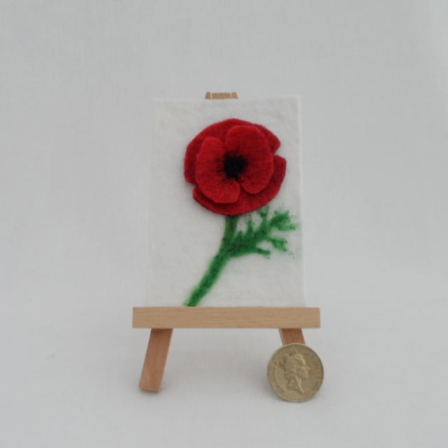 ACEO, 3D felted poppy (ref 011501)