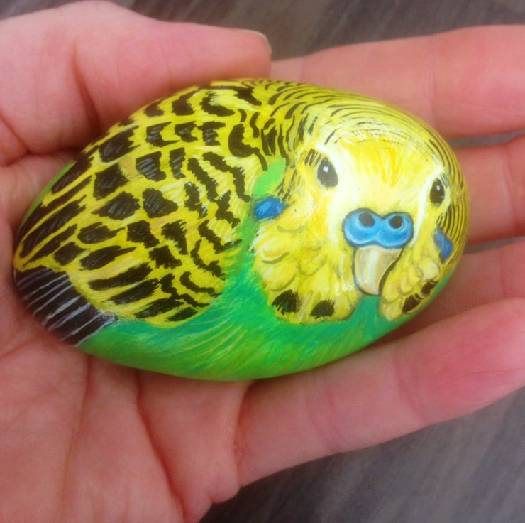 This little budgie has been hand painted onto a smooth rock and glazed for a glossy protective finish. It will be posted second class signed for.