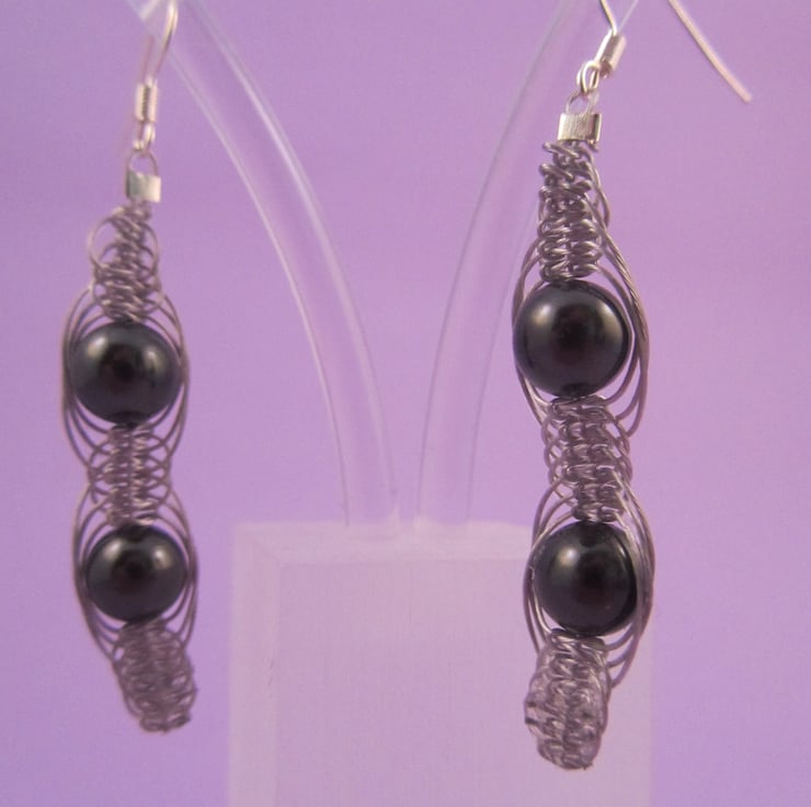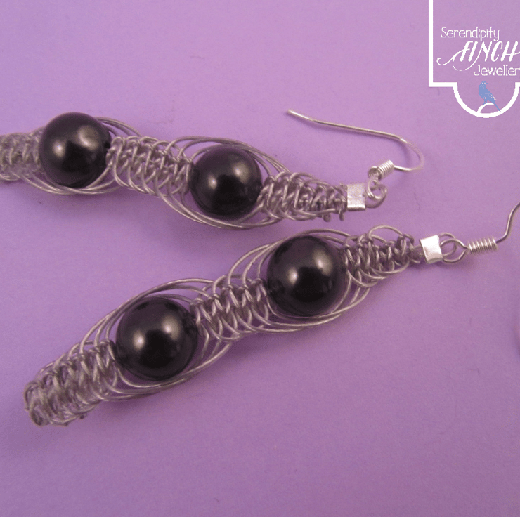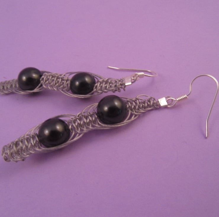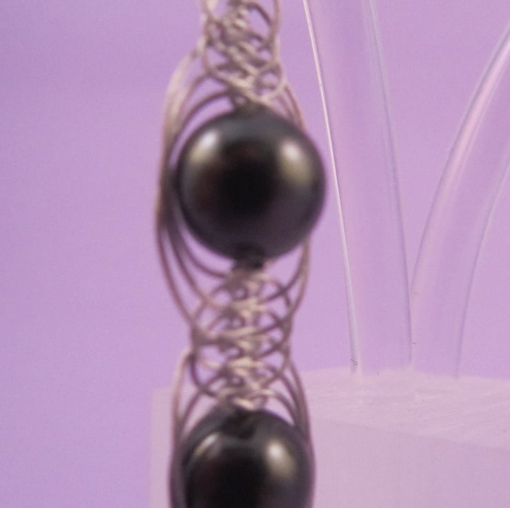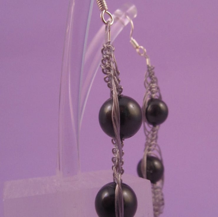 This is a pair of beautiful black shell pearl macramé dangle earrings. They are created using real black shell pearls, silver plated e-coated copper and beading wire. This is one of those pieces that can be worn either as casual or for that special occasion.