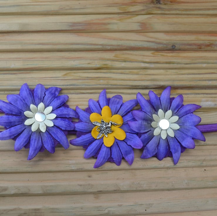 This headband is so unique and super fun! A variety of flowers and fairy embellishments on felt circles are mounted to a stretchy head band, that makes it comfortable to wear. This headband is perfect for spring-summer everyday look as well as being the perfect accessory for any occasion, an extraordinary gift for every girl! This colourful and bright headband is great for all ages!