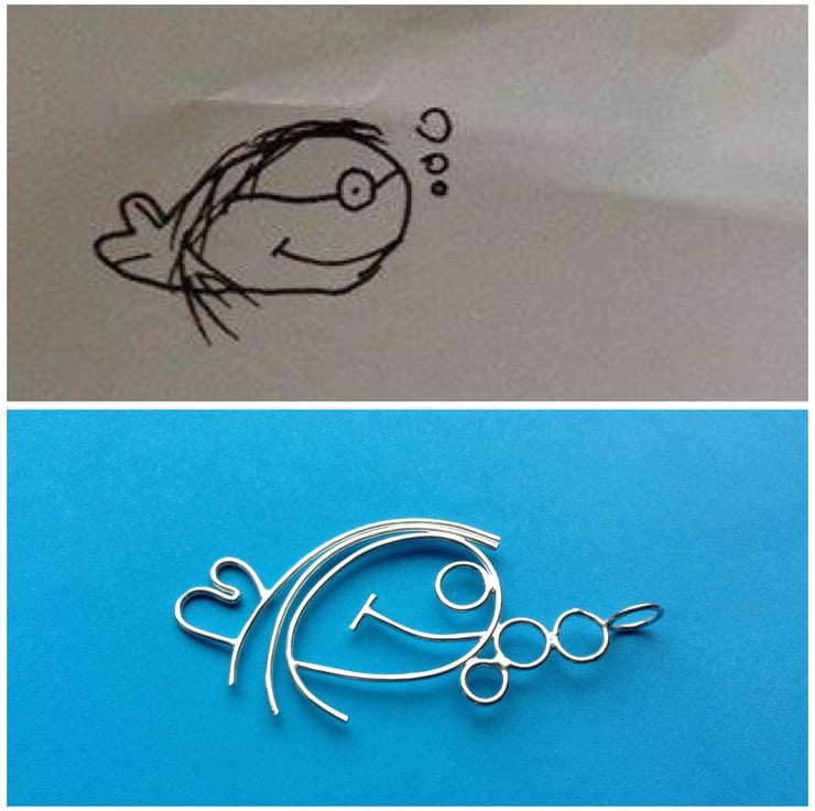 This little fishy is made from sterling silver wire using traditional silversmithing techniques based on a child's drawing.