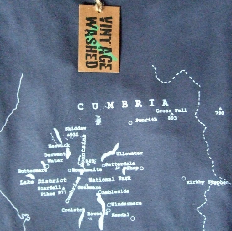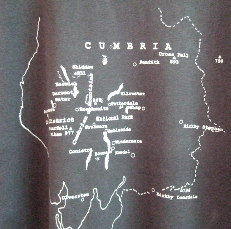 Map of the Lakes Cumbria Map Mens Printed sh/sl T shirt