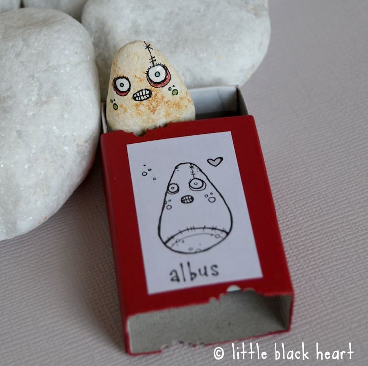 this original little artwork is handpainted by myself. it is not varnished or sealed as i did not want to change the original colour and feel of the pebble, so please take care not to handle too much or those delicate little features might rub off.