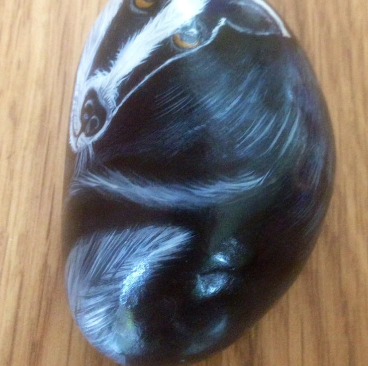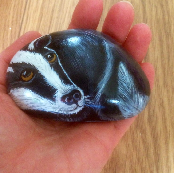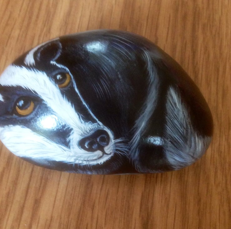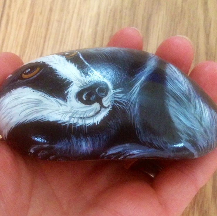 A little badger that has been hand painted onto a smooth stone and glazed for a glossy protective finish. This will be posted second class signed for.