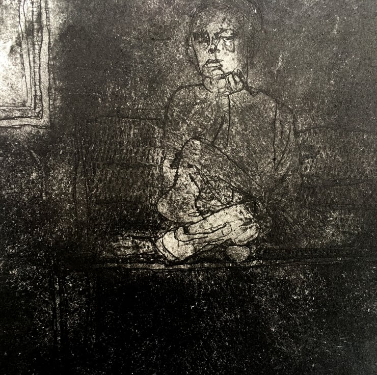 This etching is from a series of prints I made from many drawings and photographs taken whilst travelling the wonderful trains in India documenting the amazing people, crowded train stations and great views!
