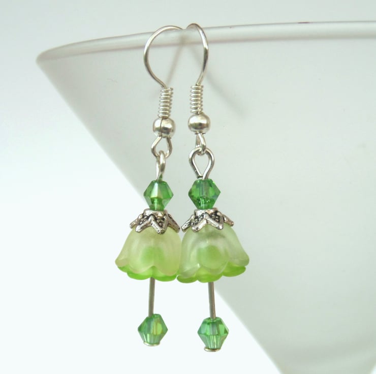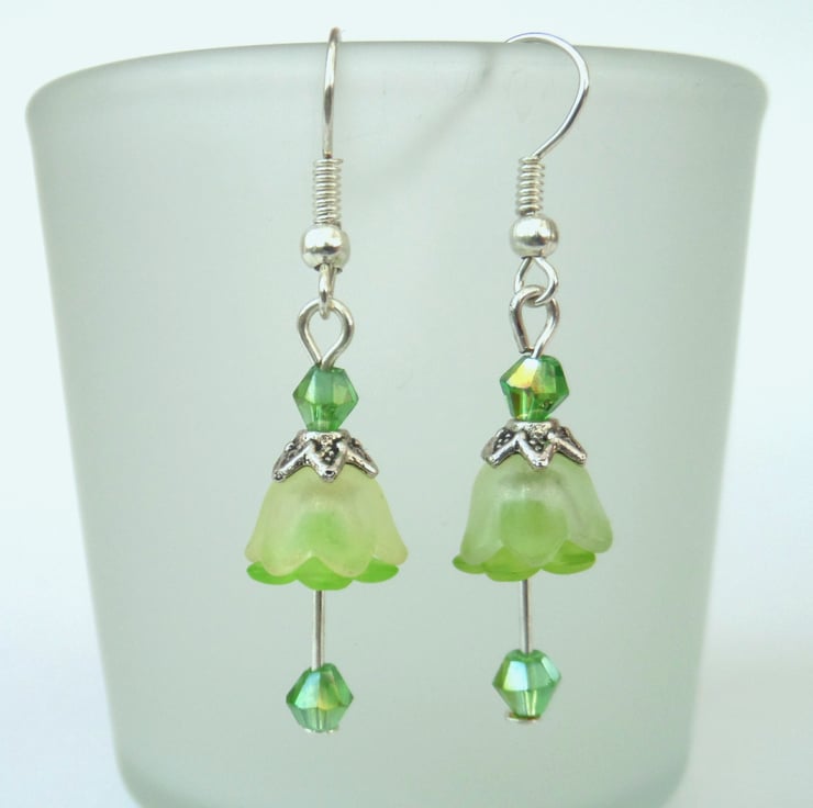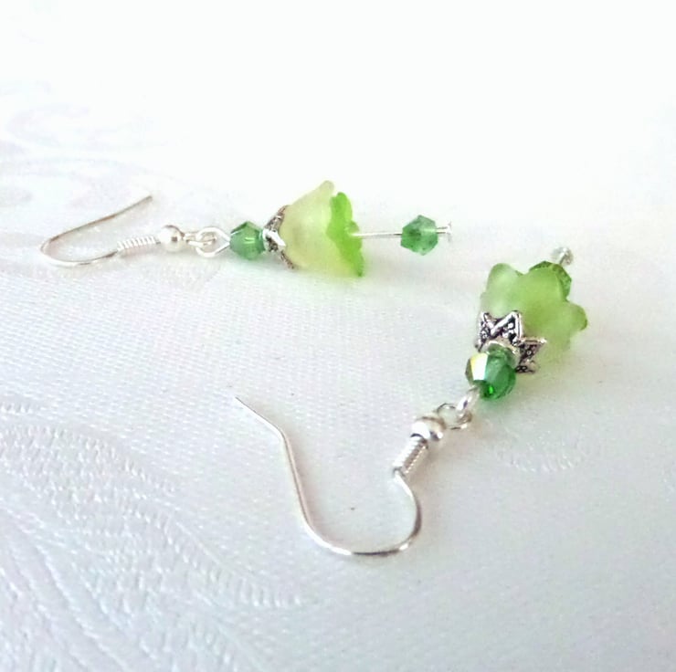 The earrings hang from silver plated earwires and have a drop of approximately 2.5 cms / 1 inch when measured from the base of the earwire.