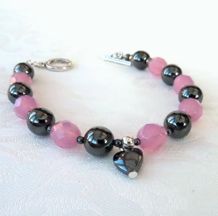 I have added a pretty little hematite heart embellishment to complete this lovely bracelet.