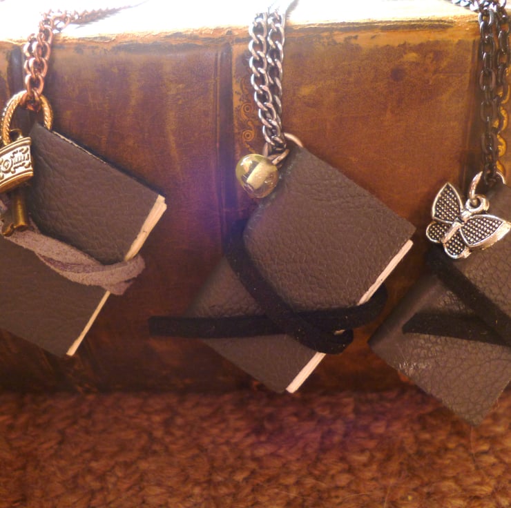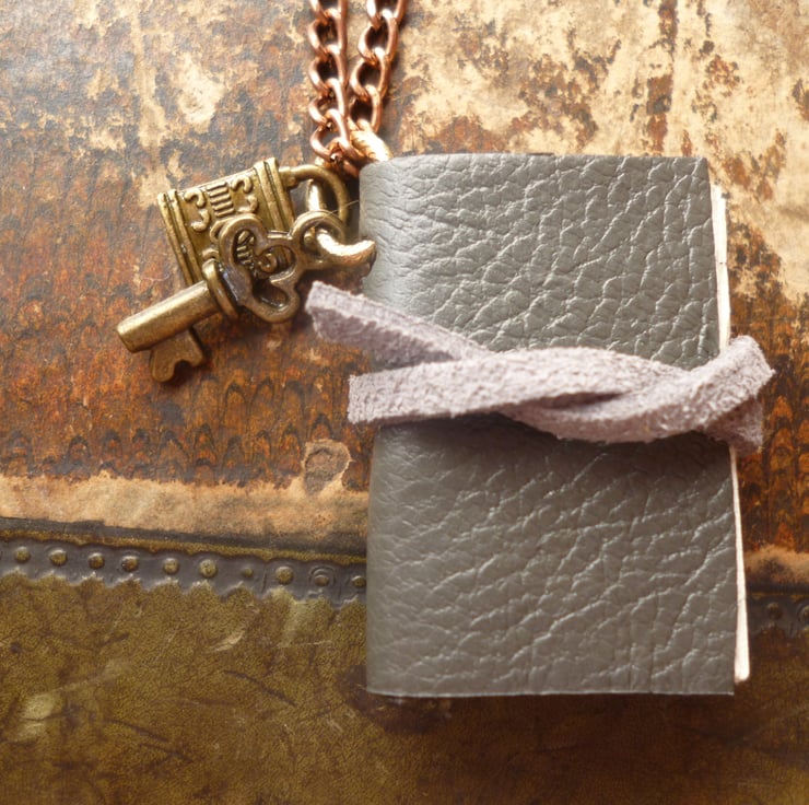 A lovely leather bound miniature notebook necklace. Make notes wherever you go with this wearable mini journal - or just wear it because it's pretty!