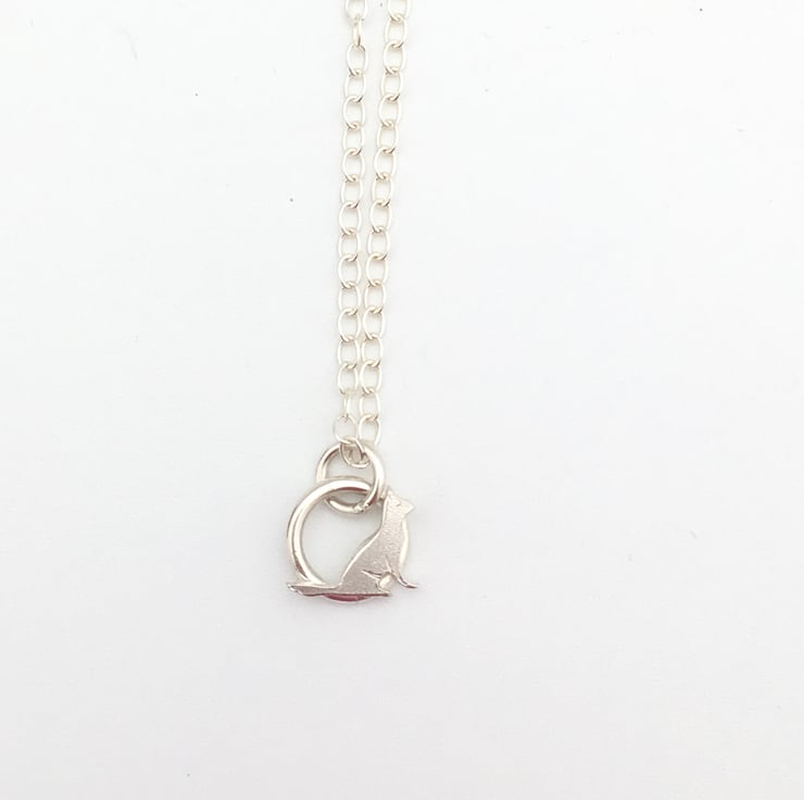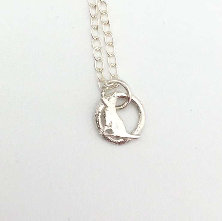 Made using a saw, a file, a hammer, pliers, a drill, silver solder and quite a bit of elbow grease . This dainty 16" necklace is light enough to wear as an everyday piece and is perfect for cat lovers.