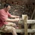 After some axe work and shaping with a draw knife I turn the wood on a pole lathe or an electric lathe or shape it with traditional hand tools.