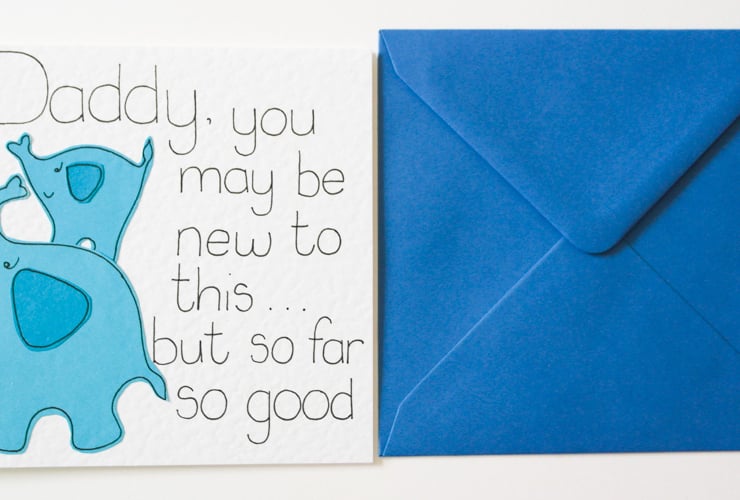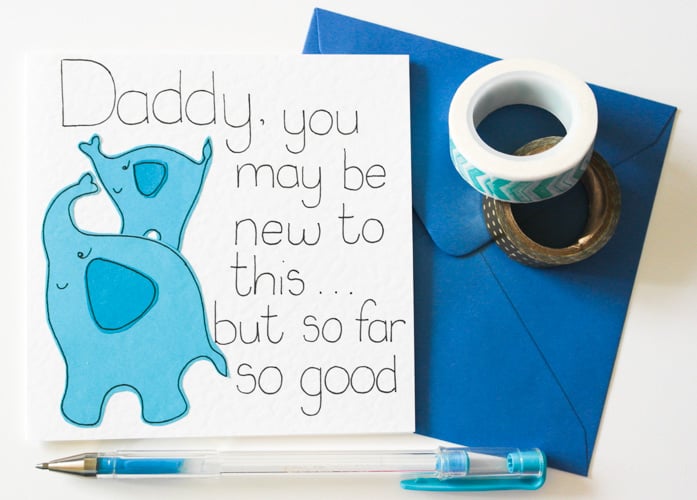 Greeting on front: Daddy, you may be new to this but so far so good.