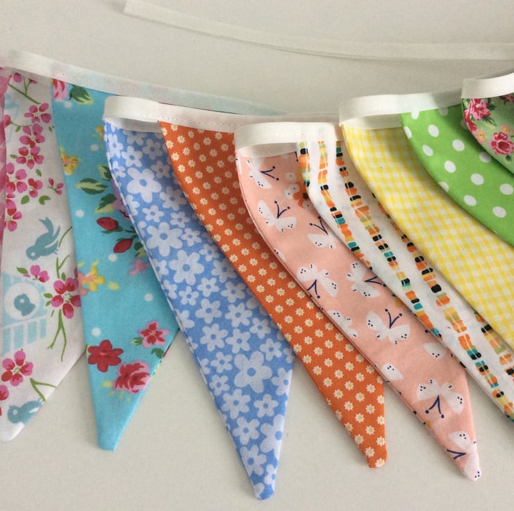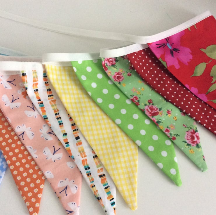 This super bright bunting in a rainbow of colours is perfect for brightening any room. This reusable double sided bunting in your favourite colours would give you years of faithful service.