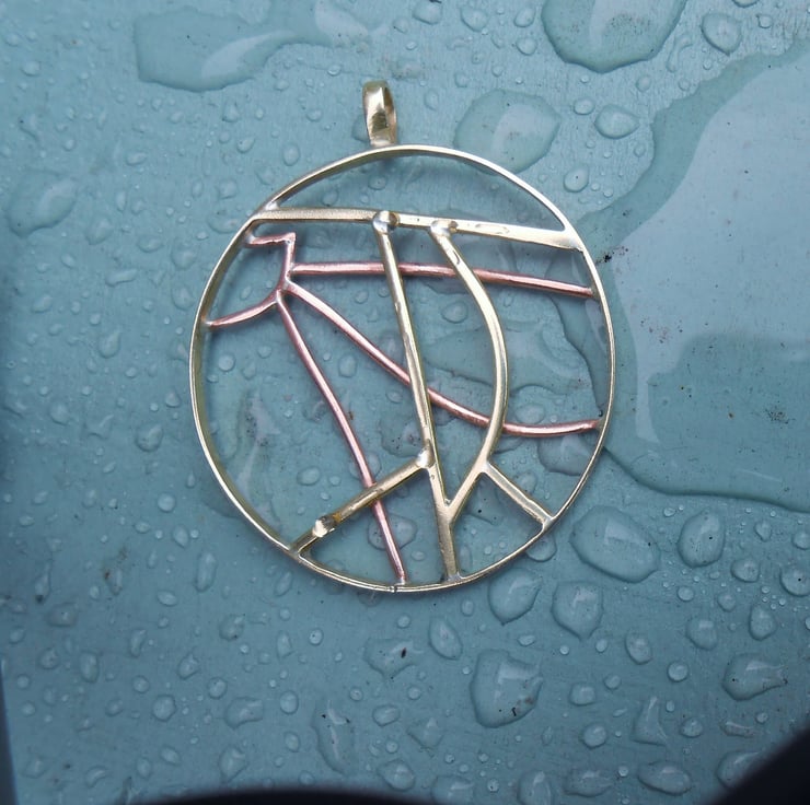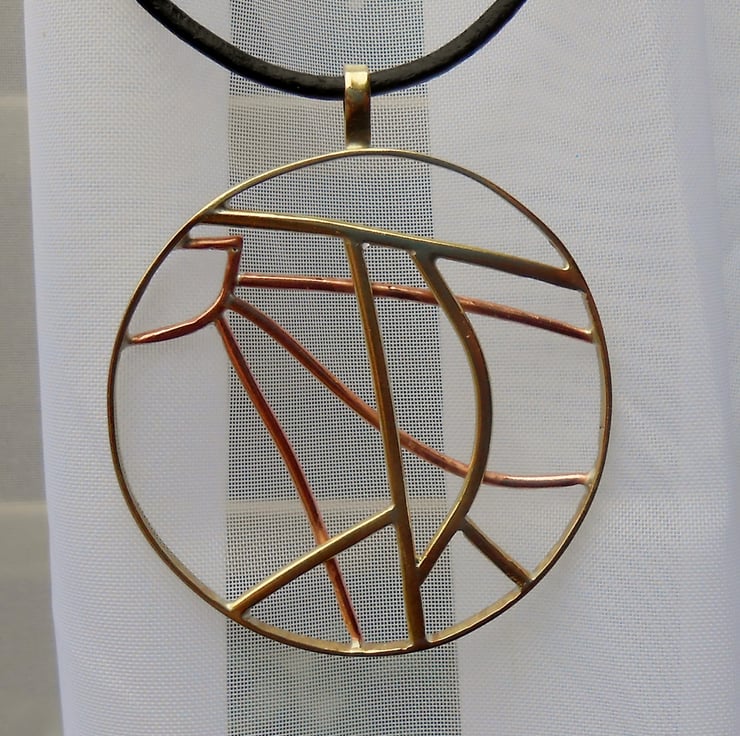 The piece measures just under 4cm across and has a loop for attaching a chain or thong necklace, it can also be made into a brooch or keyring on request.