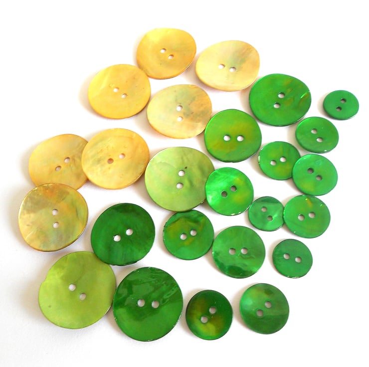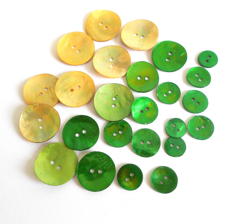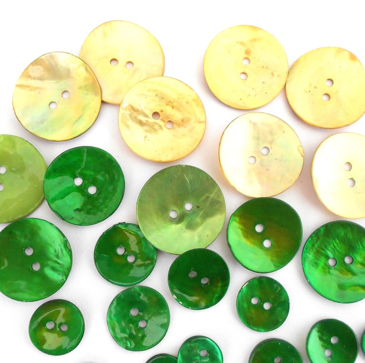 I have for sale 26 mother of pearl buttons ranging in size from 2.1/2 cm to 1cm. I am having a destash of my many buttons I have collected over the years - hence the bargain price.