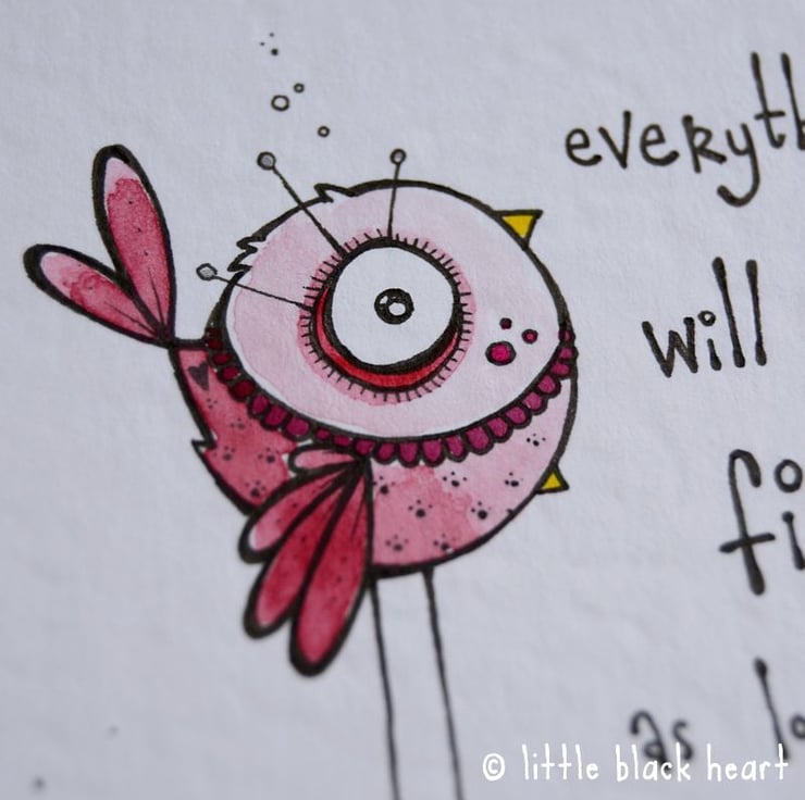 original artwork in artists pens and watercolour paints, on textured white 300gsm cardstock. drawn with a tiny 0.05 nibbed pen, and carefully painted with just the very tip of a tiny paintbrush!