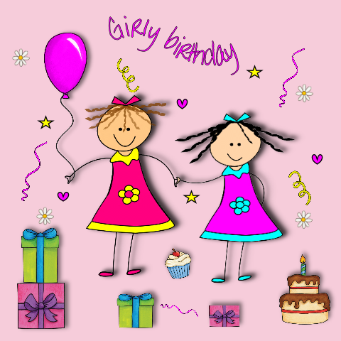 Children's birthday card, Girly birthday
