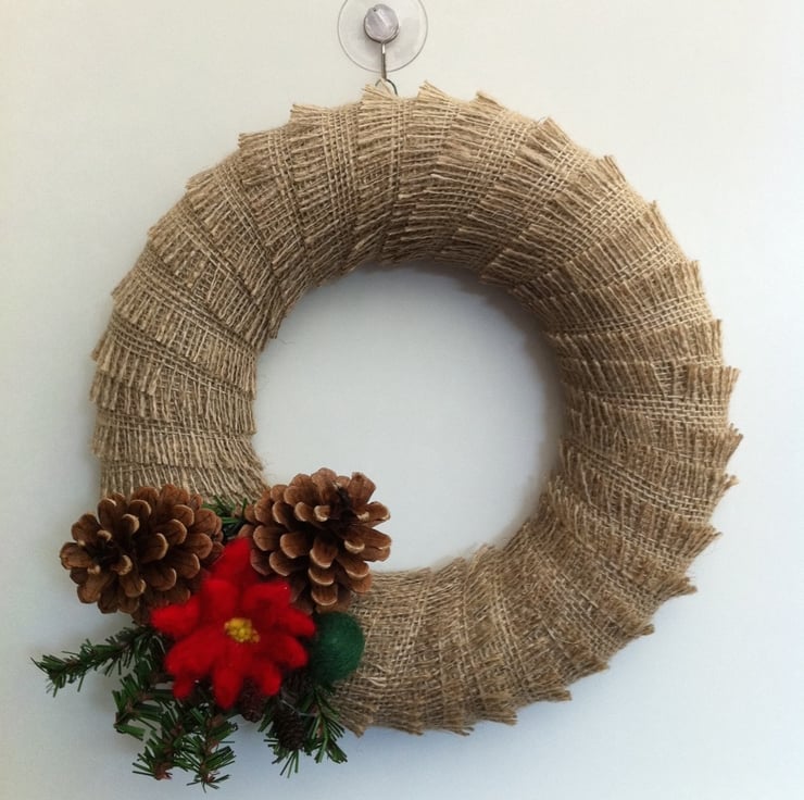 Keywords: wreath, decoration, Christmas, felt, hessian, poinsettia, needle felt, contemporary, rustic
