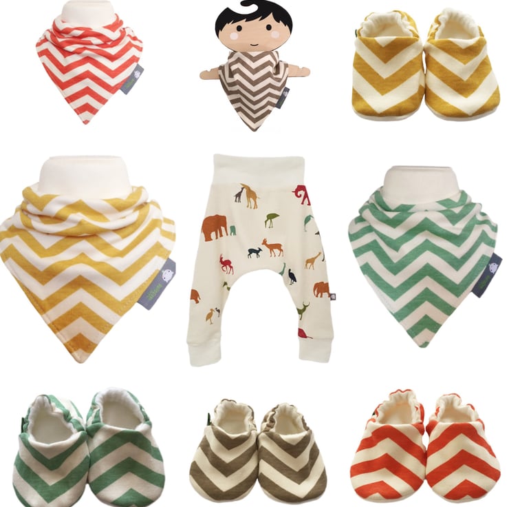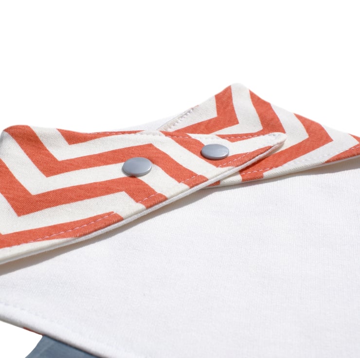 Baby Bandana Dribble Bib in SKINNY CHEVRONS CORAL Organic Knit fabric to give that perfect Modern Edge to your babies outfit. Lined with an Ultra soft & absorbent Organic Bamboo & Cotton fleece fabric, keeping moisture away from their chests whilst keeping their clothes dribble free and looking Ultra Cute. (co-ordinating items - last pic).