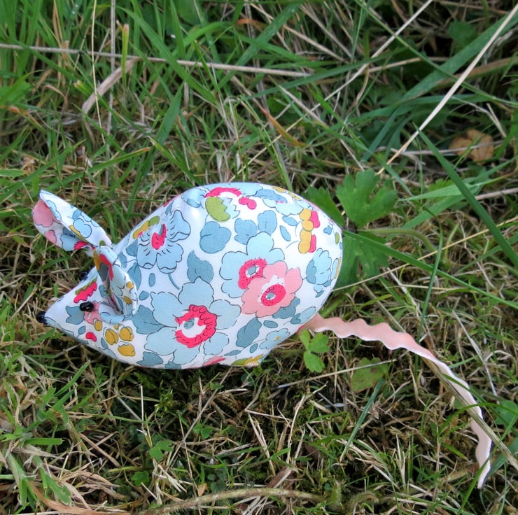 Made from a beautiful Liberty Lawn print she measures 11.5cm in length, excluding her velvet ric rac tail.