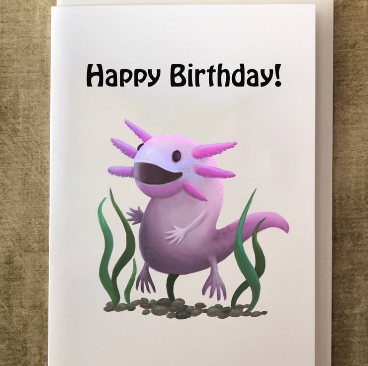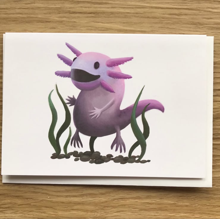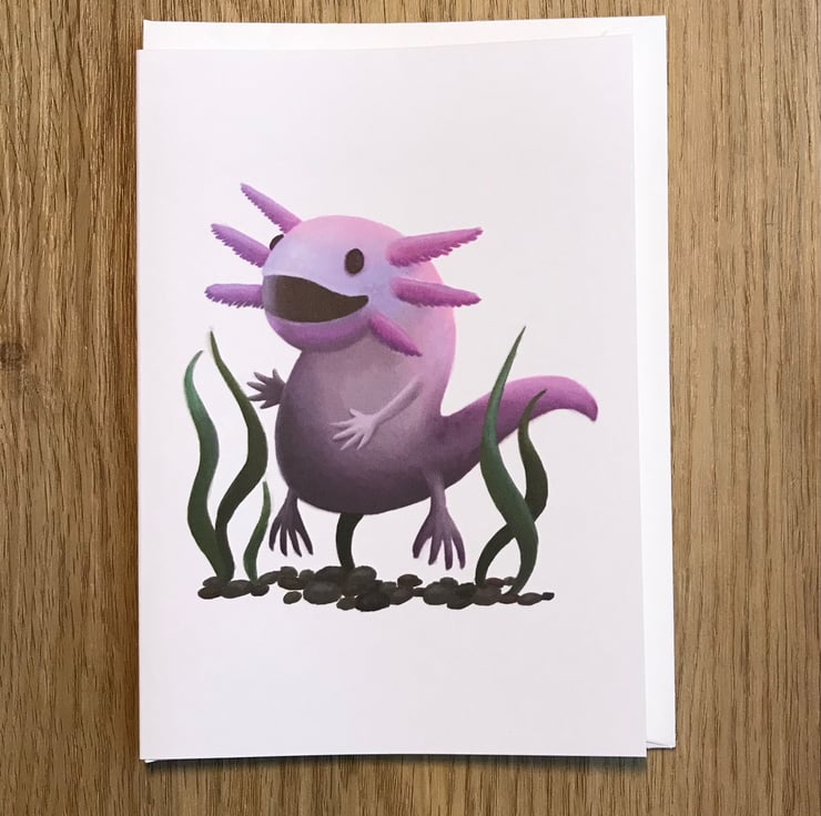 An amazing Axolotl blank greeting card with white envelope by DuffleCat Prints (Damian Case)