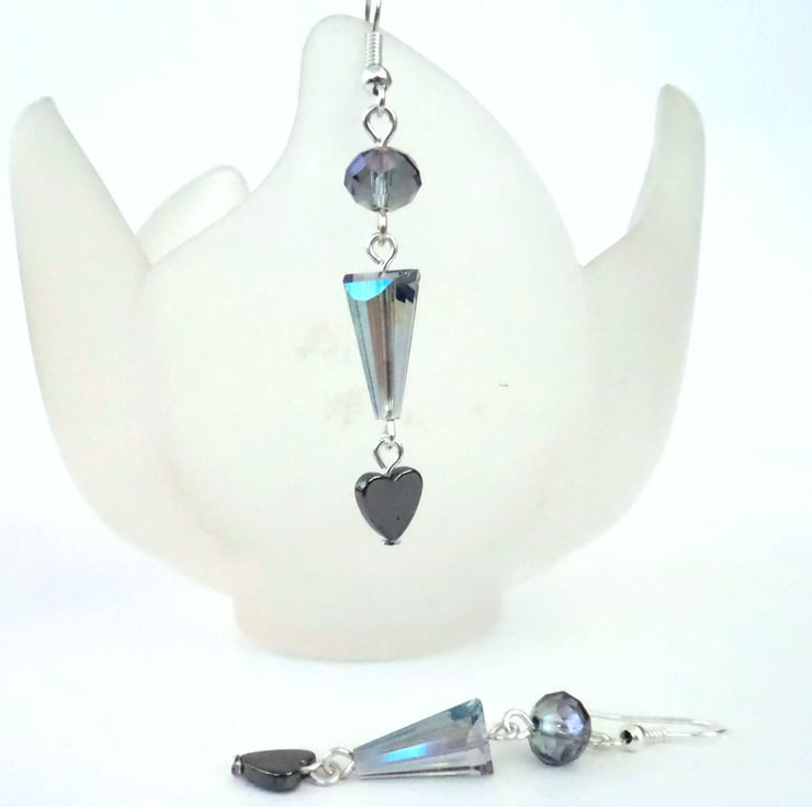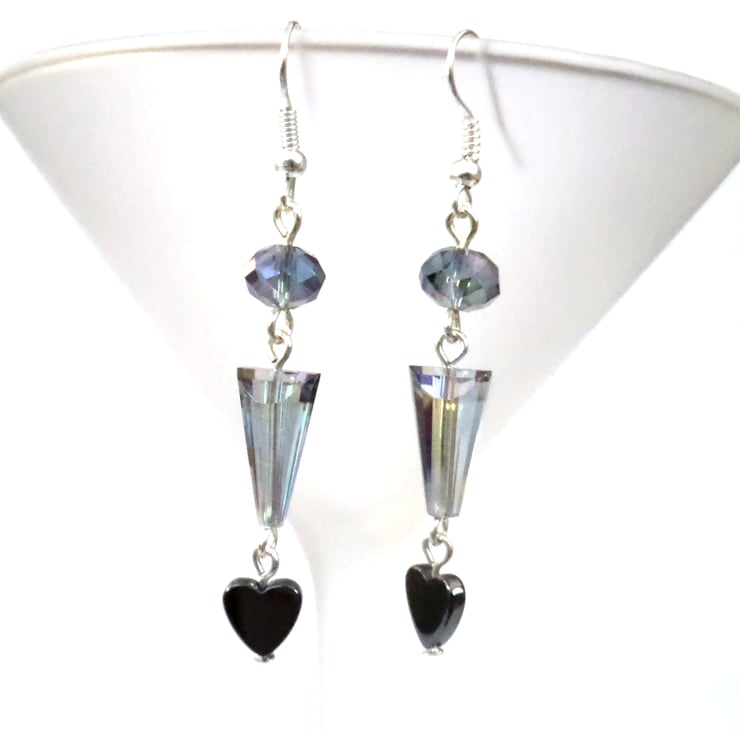 The earrings hang from silver plated wires and have a drop of around 4.5 cms / 1.75 inches from the base of the earwires.