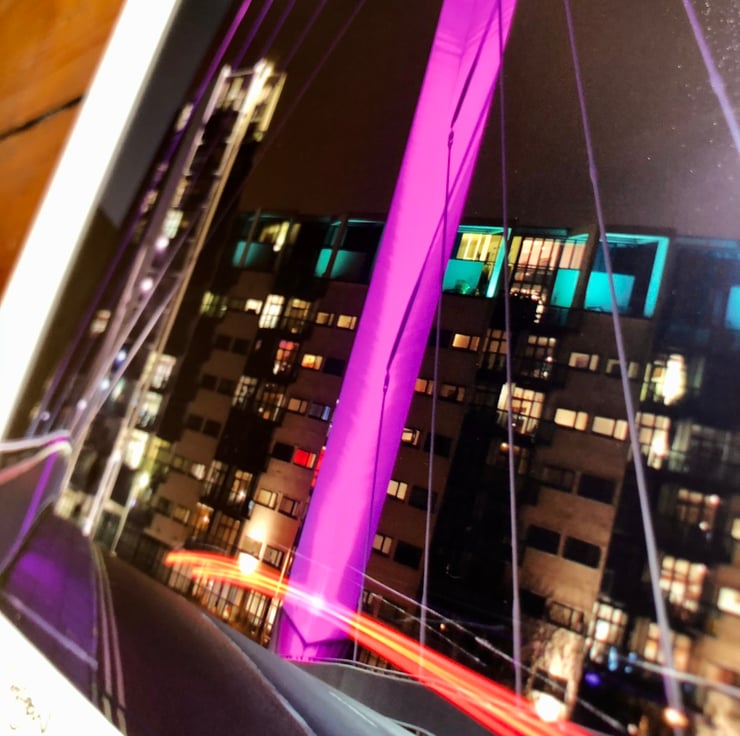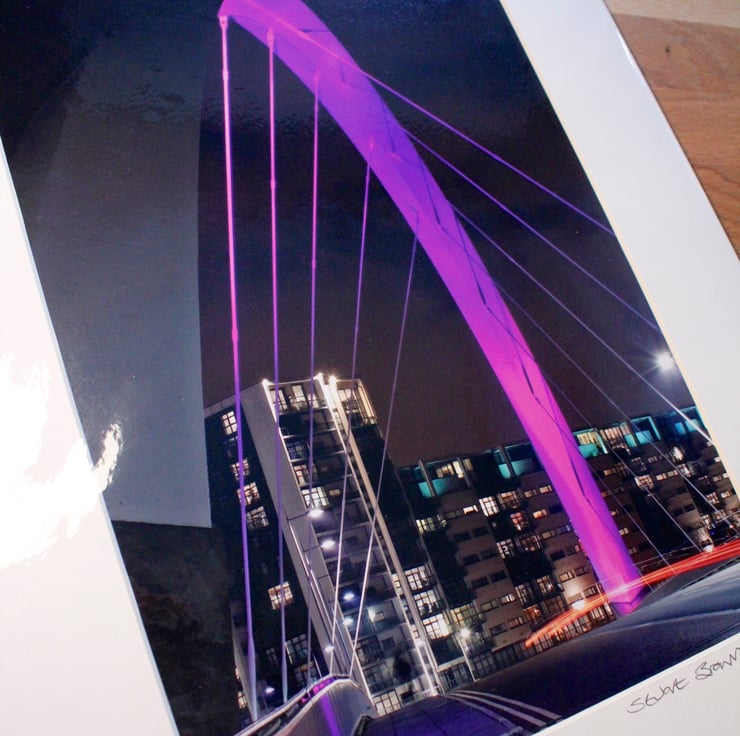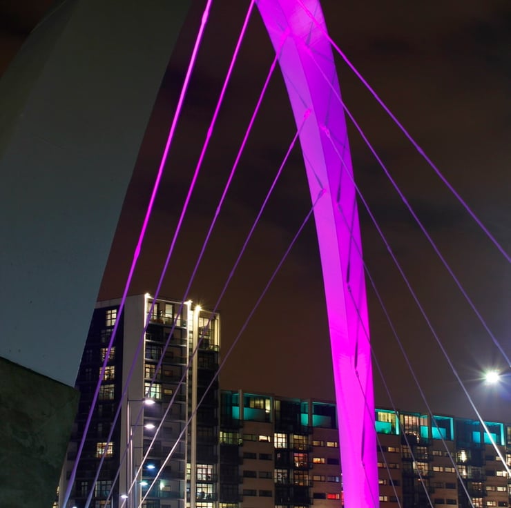 A colourful and contemporary view of Glasgow's Squinty Bridge at night