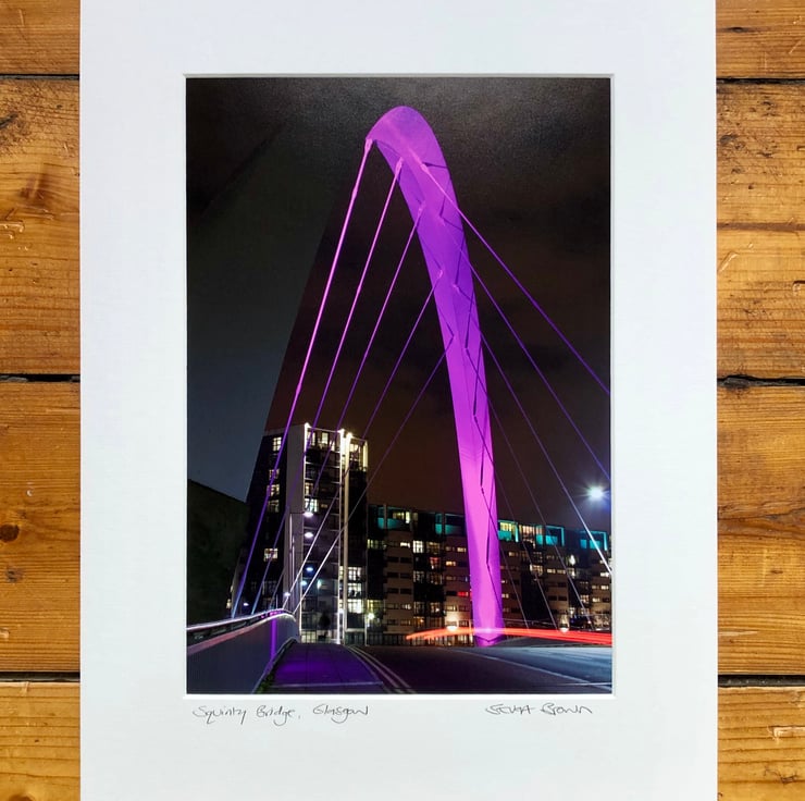 The Clyde Arc Bridge in Glasgow has been nicknamed by locals as the 'Squinty Bridge' because of its unique shape and has quickly become a modern icon of the city. In this image I highlight the incredible vibrancy of the bridge as it is lit at night and with a long exposure I was lucky enough to capture the night trail of a passing car.