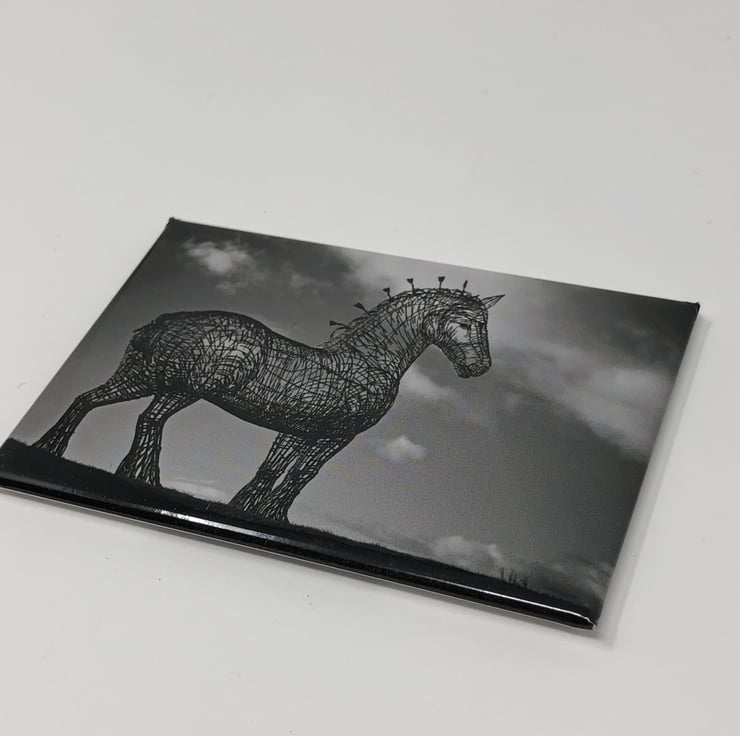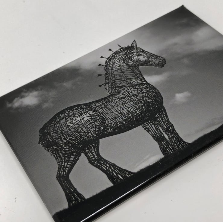 High quality fridge magnet featuring original photo of the iconic Heavy Horse by sculptor Andy Scott