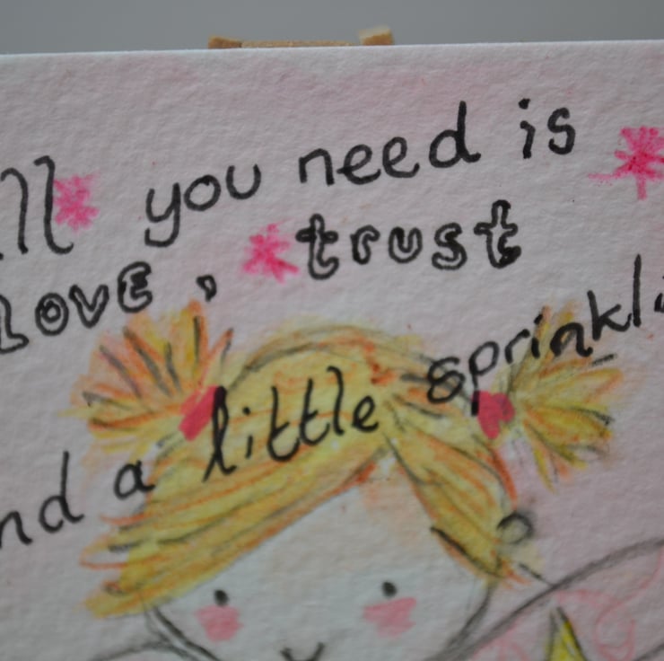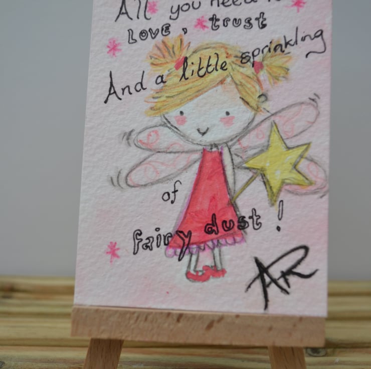 An ACEO (Art Cards, Editions and Originals) illustration, Size 2.5 Inches x 3.5 Inches, of a cute little philosophical fairy.