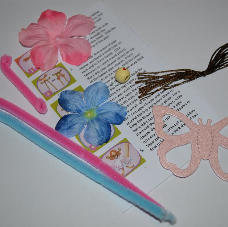 A fairy wand kit with all of the items you need to make and decorate your own fairy wand. These little kits make wonderful party favours and each one is unique, with different coloured tissue paper, ribbons and decorative items included.