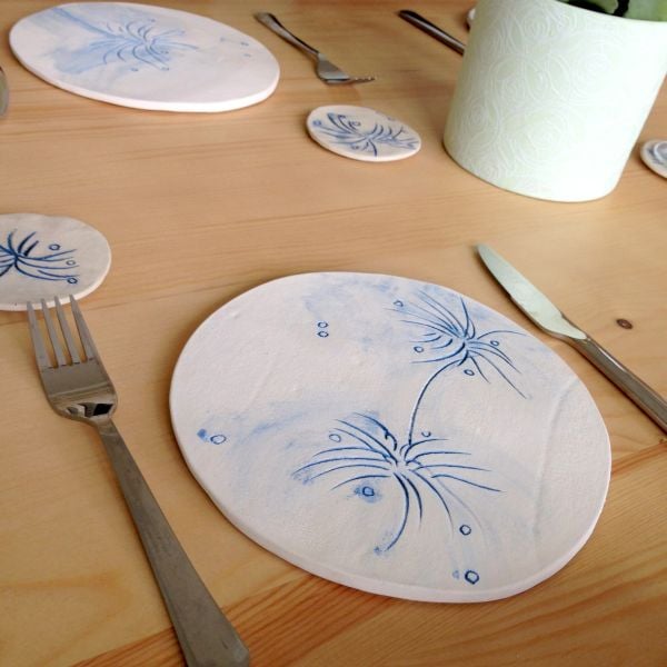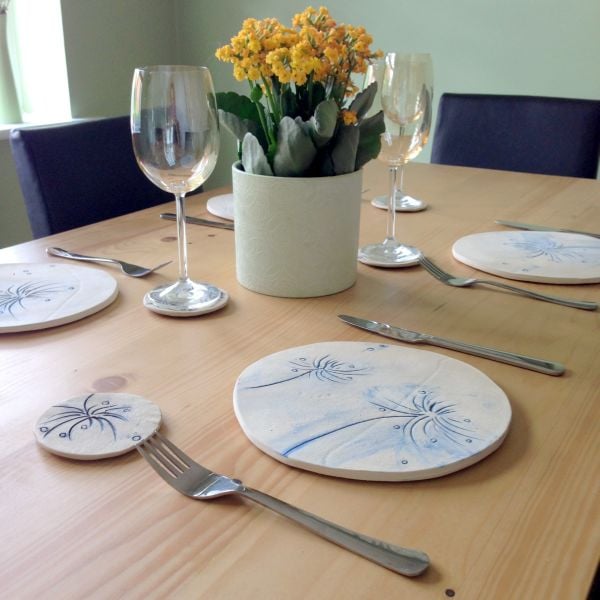 These ceramic place mats are a unique one-off item, handmade by me in my studio. No two sets are ever the same.