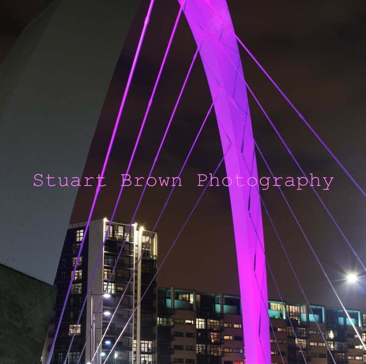 The Clyde Arc Bridge in Glasgow has been nicknamed by locals as the 'Squinty Bridge' because of its unique shape and has quickly become a modern icon of the city. In this image I highlight the incredible vibrancy of the bridge as it is lit at night and with a long exposure I was lucky enough to capture the night trail of a passing car.