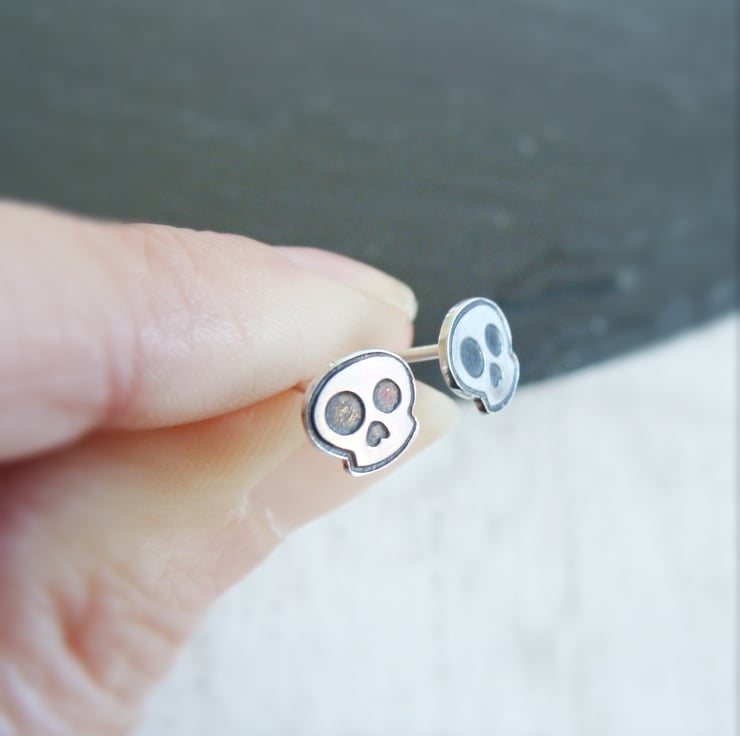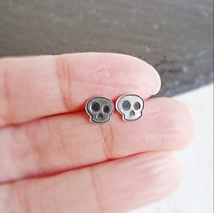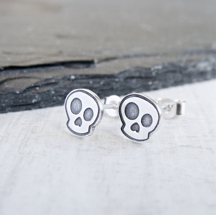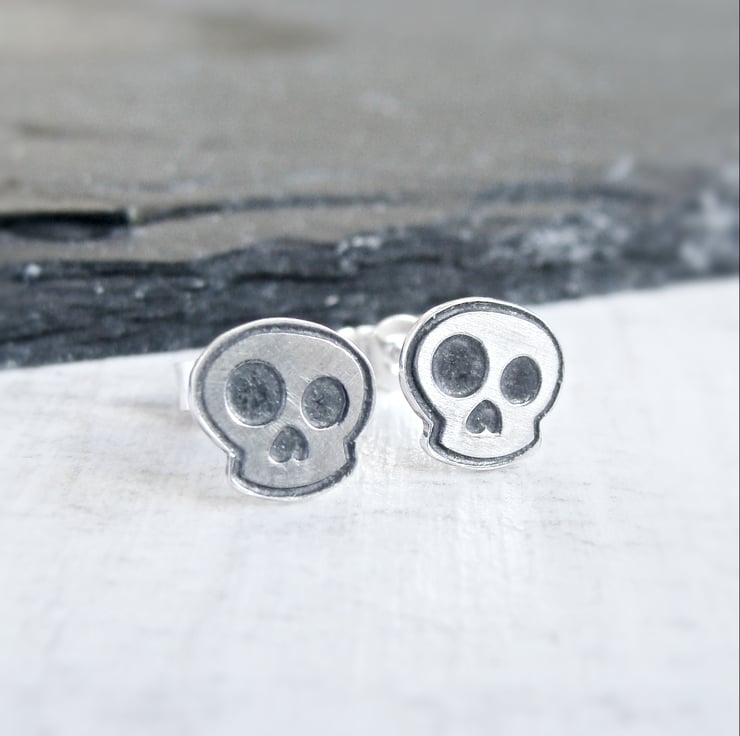 The daintiest, little skulls to adorn your ears. Each one stamped, cut, soldered, oxidised and polished by hand from a sheet of sterling silver.