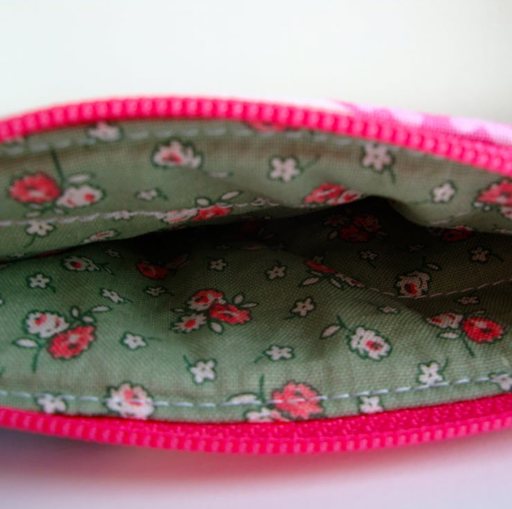 A lovely small zipper purse , ideal for storing a selection of your loose change - cards , can also be used as a mini make up bag .
