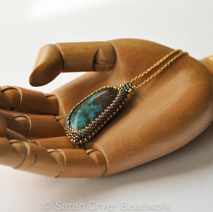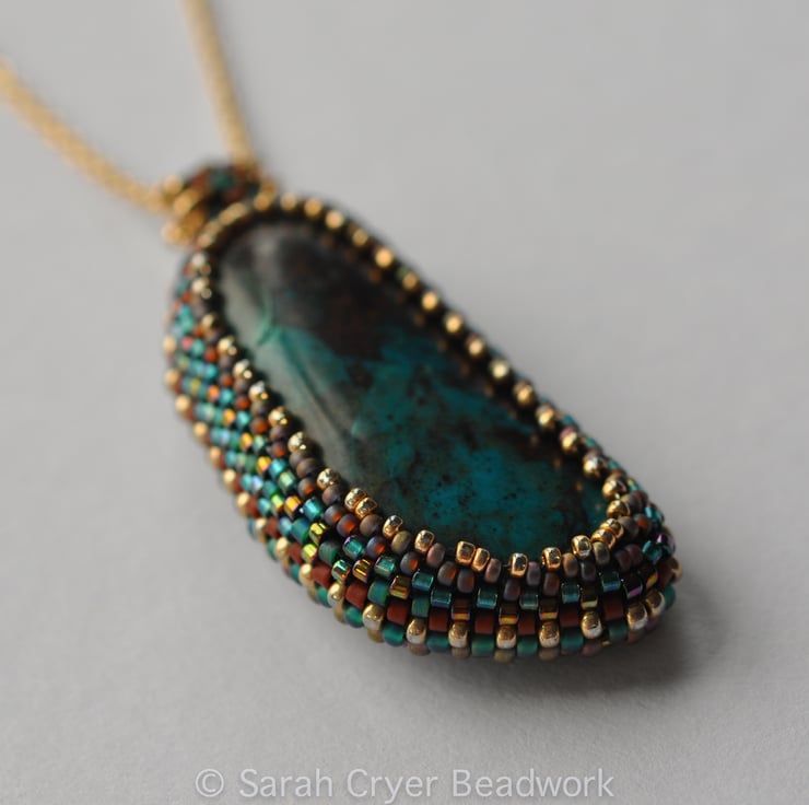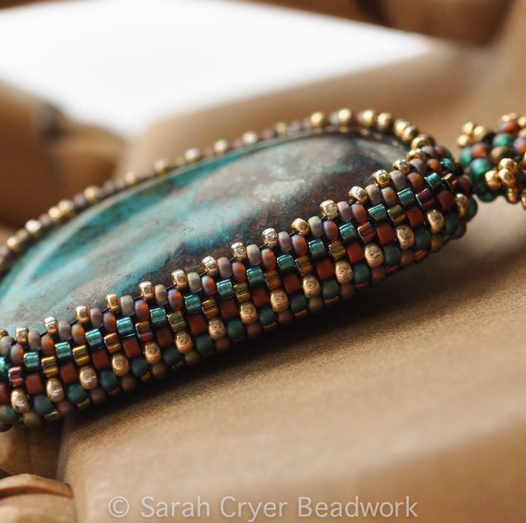 The colours of the stone reminded me of the jewellery and other artwork we saw a few years ago on a trip to Egypt, so the simple banding of the beadwork reflects the rows of beads forming their beautiful collars.