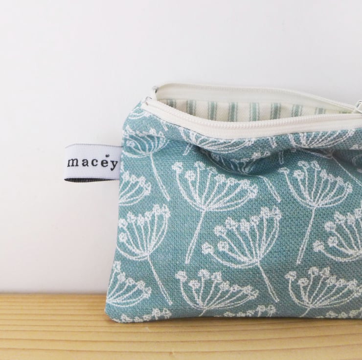 Made from Charlotte's beautiful Cow Parsley print fabric in seagreen, the cow parsley design has been developed from her original embroideries, with a duck egg stripe lining.