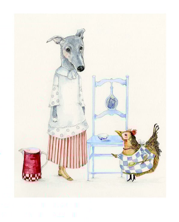 Betty Clutterbuck the Cook and the new kitchen maid Daisy the Dog long for a sit down after a hard day baking