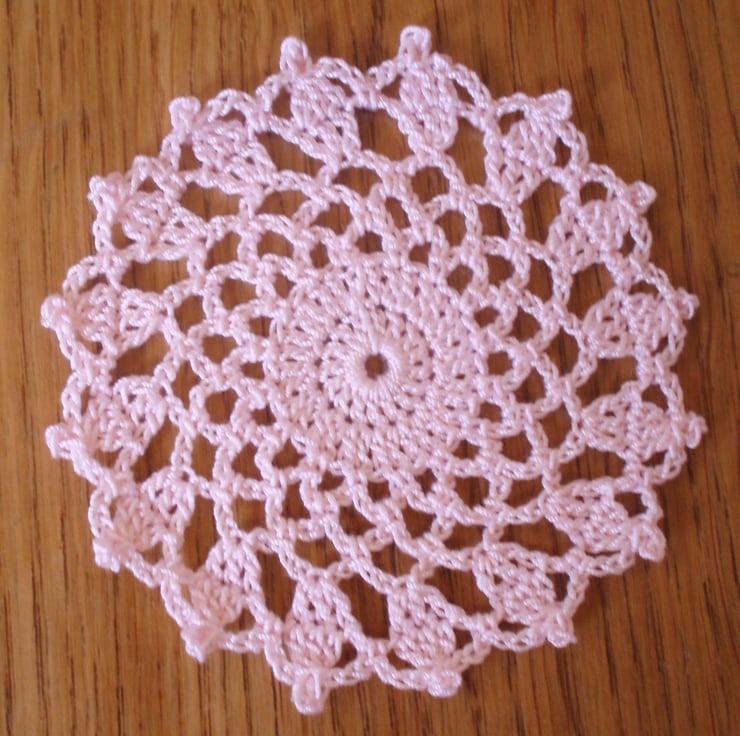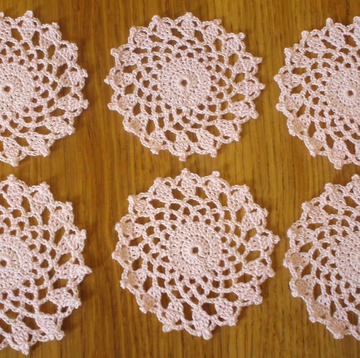 SET of 6 SMALL COTTON COASTERS in PALE PINK - LOVELY CROCHET DESIGN